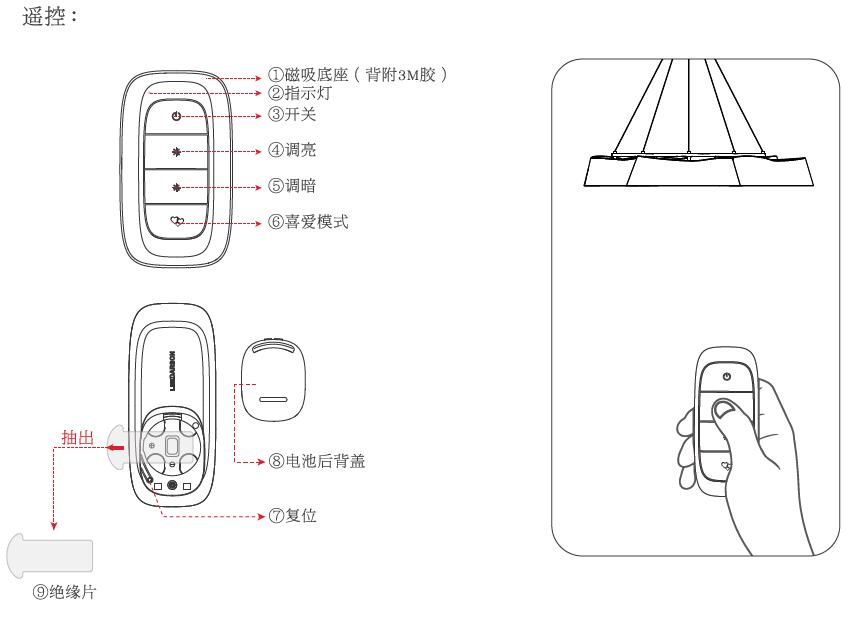 膨胀螺栓*4;十字头螺钉*2;接线帽*3;遥控器*1(遥控版本);灯体*1