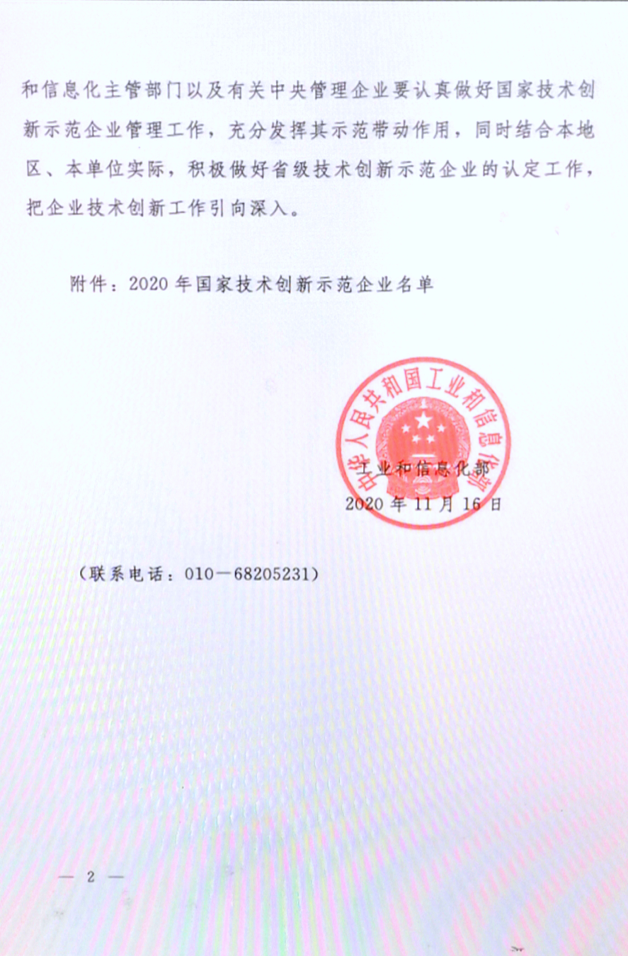 近日,,,,根据《国家工业和信息化部关于公布2020年国家技术创新示范企业名单的通知》(工信部科〔2020〕174号)文件,,,漳州雀魂光电子科技有限公司榜上有名,,,,是福建省唯一一家上榜该荣誉的企业。。